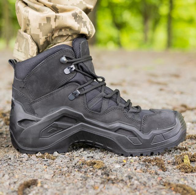 Зручні та міцні черевики V.H.S. у стилі мілітарі чорного кольору – одні з найміцніших на ринку завдяки технології литої підошви. У тактичних черевиках V.H.S. TACTICAL посилений підносок і задник з термозміцненого матеріалу забезпечать захист від травм, що вкрай важливо в умовах експлуатації військового та туристичного взуття. Петлі швидкісної шнурівки допоможуть без проблем швидко одягнути і зняти взуття, а оптимальна висота берців цілком зручна як при ходьбі, так, наприклад, і при тривалому перебування в позиції "стрільби з колін". Сучасні методи кріплення підошви до основи за допомогою прямого припливу є найнадійнішими у виробництві взуття. Підтримує водонепроникність черевиків V.H.S. TACTICAL дихаюча мембрана. Черевики з нубукової шкіри не утримують вологу на ногах, оскільки пропускають повітря. Високий протиковзкий протектор відмінно підходить для пересування по асфальту та по пересіченій місцевості та забезпечує чудову мобільність та стійкість. Ви можете сміливо використовувати тактичні черевики у військових цілях, а також для всіх видів активного відпочинку, таких як трекінг, кемпінг і т.д.